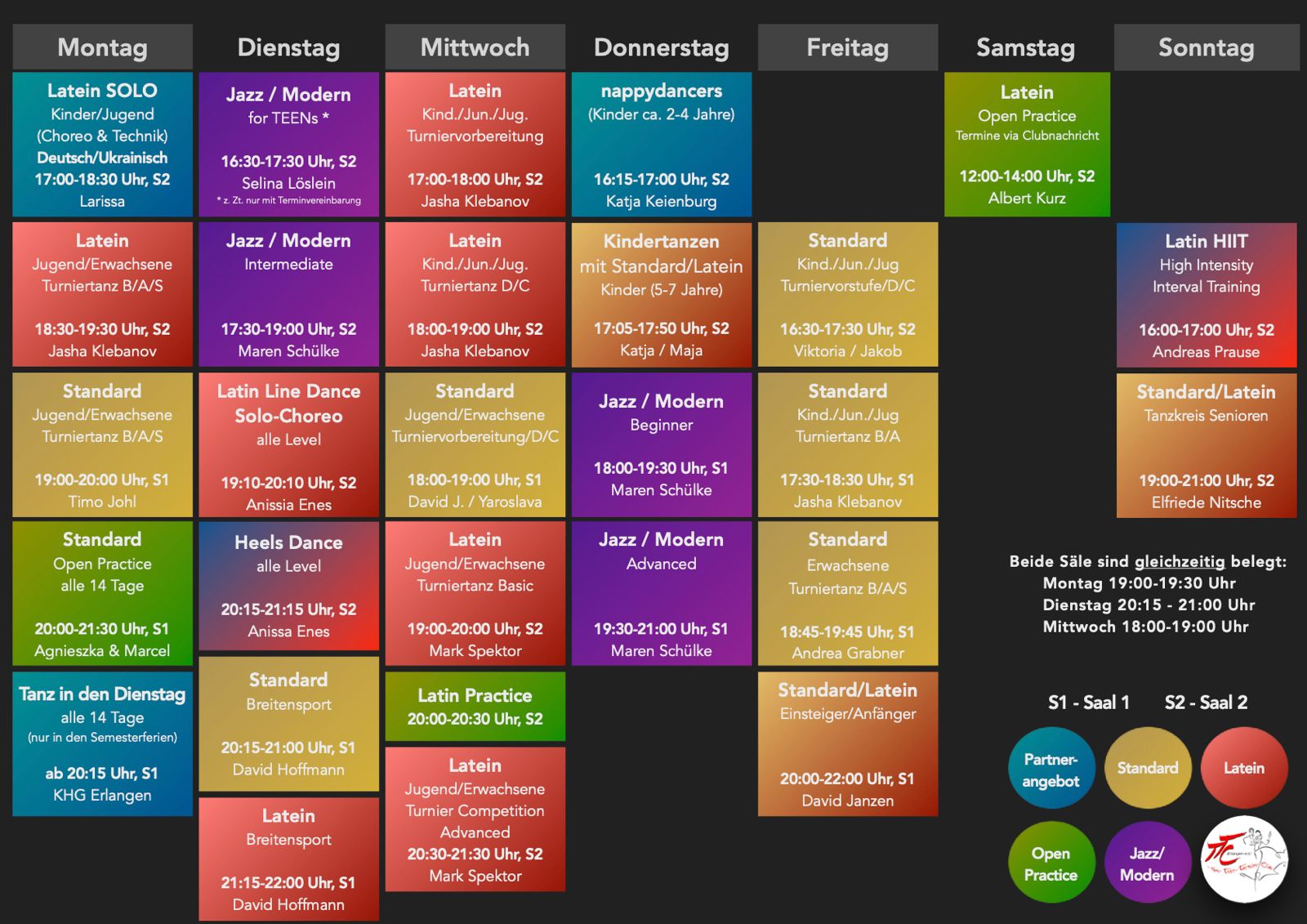 ACHTUNG dienstags ab sofort 20:15-21:15 Doppelbelegung der Säle, kein freies Training möglich!